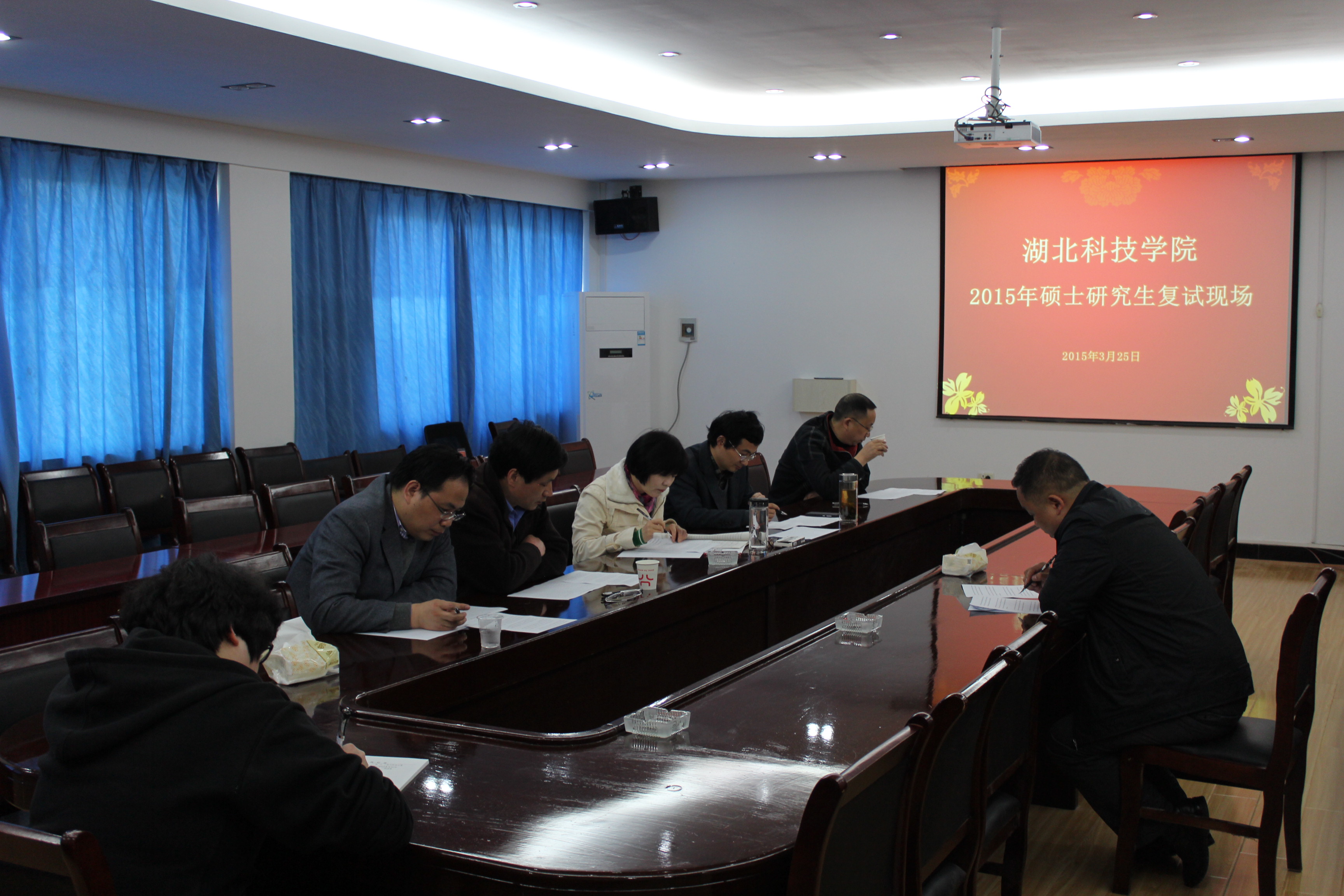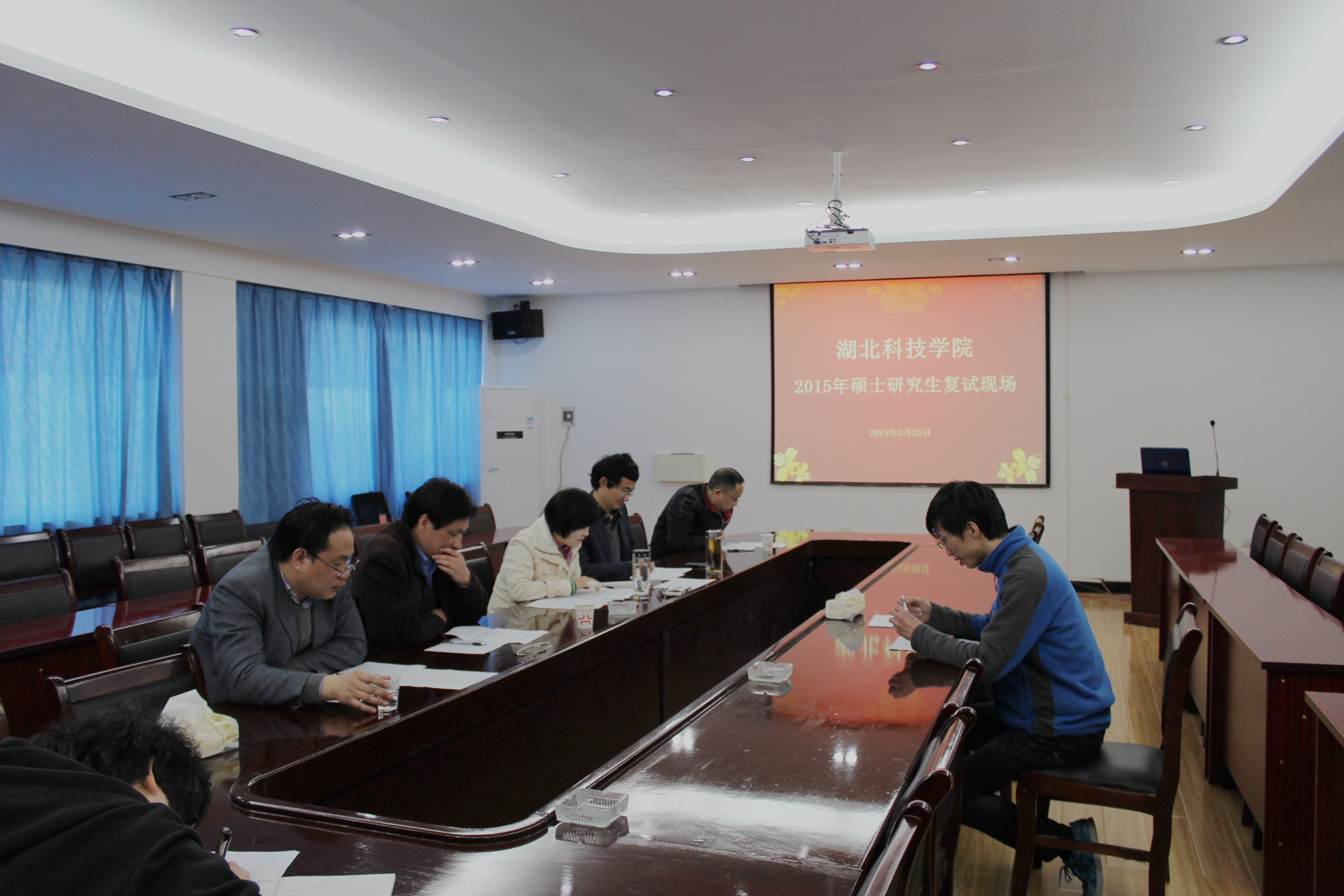 2015年3月25日 星期三,一年一度的研究生复试在beat365官网院会议室举行。面试老师由沈定文、闵清、胡旺平等领导班子组成。