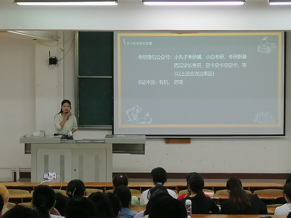 beat365官网2021届毕业生共有22人考上研究生,此次分享会邀请到考上武汉理工大学的熊贝、沈阳药科大学的冯琪勋等六位同学进行经验分享。他们根据自身经验从择校、信息收集方法、备考经验和考研感受等方面为同学们带来详细的经验交流,引导同学们合理择校,同时告诉同学们应该如何应对考研疲倦期,如何疏导压力,以最佳状态迎接考试。为未来有考研想法的同学拨开迷雾,点亮考研道路的明灯。