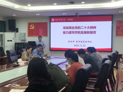 李炎坤在党课中回顾了党的二十大基本情况,阐述了党的二十大报告精神实质,提出了奋力谱写学院发展新篇章的愿景和路径。他指出,党的二十大选举产生了以习近平同志为核心的新一届党中央领导集体,科学擘画了新征程的宏伟蓝图,广泛汇聚了亿万人民的创造伟力。当前,全党上下深入开展学习贯彻习近平新时代中国特色社会主义思想主题教育,是贯彻落实党的二十大精神的重大举措。beat365官网党员、干部要以深入开展主题教育为契机,坚持以学铸魂,坚定政治信仰;坚持以学增智,提升干事本领;坚持以学正风,转变工作作风;坚持以学促干,推进学院发展。要以国家一流专业建设为抓手,提升专业建设水平,以申请药学专硕授权点为抓手,提升学科建设水平,以高质量党建引领学院各项事业高质量发展。最后,他号召全体党员干部要不忘初心、牢记使命,在立德树人中展现新作为;要谦虚谨慎、艰苦奋斗,在争创一流中干出新业绩;要敢于斗争、善于斗争,在作风建设中体现新担当;要团结一心、携手共进,在学院建设中创造新辉煌。