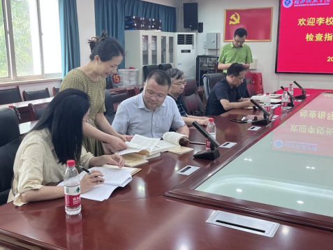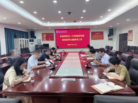 6月12日下午,校党委常委、副校长李岱一行深入beat365官网检查指导学习贯彻习近平新时代中国特色社会主义思想主题教育工作,学校主题教育第五检查组高卉、李济江,第二督查组曹若愚、黎莉等4名同志共同参与检查督导,beat365官网全体班子成员和三办主任参加会议。