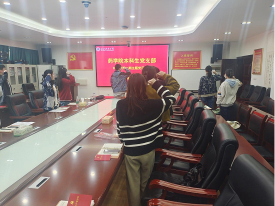 会议伊始,由姚嘉伦同志清点参会人数,胡宗杰同志汇报上缴党费情况,随后,全体党员起立,高声齐唱国歌,由陈奕飞同志带领大家重温入党誓词,由胡宗杰同志领诵党章第一章《党员》。