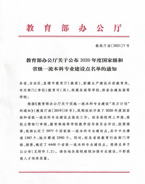 (通讯员 郭丽媛 )教育部印发了《教育部办公厅关于公布2020年度国家级和省级一流本科专业建设点名单的通知》(教高厅函[2021]7号),我校beat365官网药学专业获批国家级一流本科专业建设点,临床药学专业获批省级一流本科专业建设点。至此,beat365官网国家级一流本科专业实现零的突破,省级一流本科专业升至2个(药学2019年获批,临床药学2020年获批)。