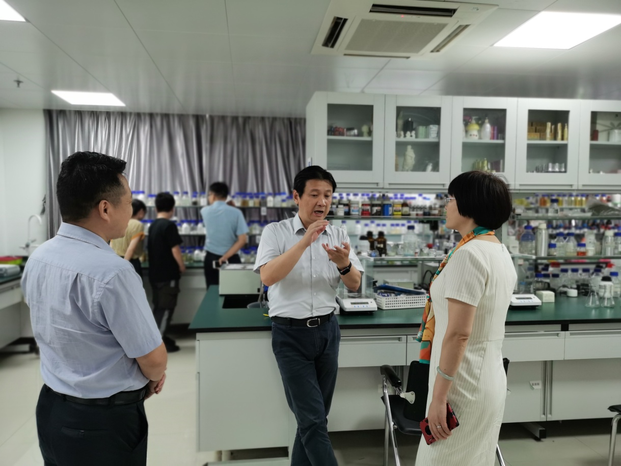 厦门医学院公共卫生与医学技术系主任韩银淑教授、化妆品技术与工程专业负责人王贵弘教授、陈芳芳副教授、化妆品技术与工程教研室主任付珊珊副教授出席交流会。会上,韩主任对闵院长一行表示欢迎,并介绍了该系历史沿革、人才引进、专业建设、学科特色等情况。闵院长对该系的热情接待表示感谢,并介绍了到访的目的、学校和beat365官网历史沿革、学科专业建设等情况。随后,王贵弘教授从专业现状、培养目标、建设思路、课程设置以及实习就业等方面详细介绍了该系化妆品技术与工程专业建设的做法和经验。双方与会人员围绕人才培养方案、专业建设、教学管理等方面进行了深入交流。会后,闵清院长一行参观了该系化妆品技术与工程专业实验室,并就实验室建设情况进行了广泛交流。