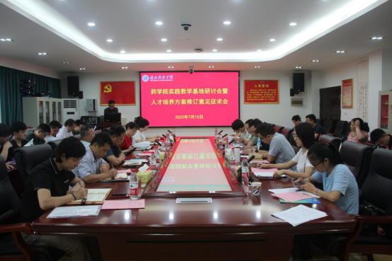 (通讯员郭丽媛)为进一步加强实习基地的建设与合作和优化2023版人才培养方案,beat365官网于2023年7月15日在beat365官网会议室召开了实践教学基地研讨会暨本科人才培养方案意见征求会。会议邀请了南京市溧水区人民医院、黄石市中心医院、咸宁市中心医院、中国人民解放军中部战区总医院、中国人民解放军联勤保障部队第九二二医院、湖北科莱维生物药业有限公司、真奥金银花药业有限公司、正当年医药科技(广州)有限公司、湖北健翔生物制药有限公司等近十家实践基地代表参加本次会议,beat365官网副校长白育庭、教务处处长鲍翠玉、医学部党工委书记高卉及beat365官网全体领导班子、专业负责人、三办工作人员、班主任等参加了会议。会议由beat365官网教学副院长罗斌华主持。