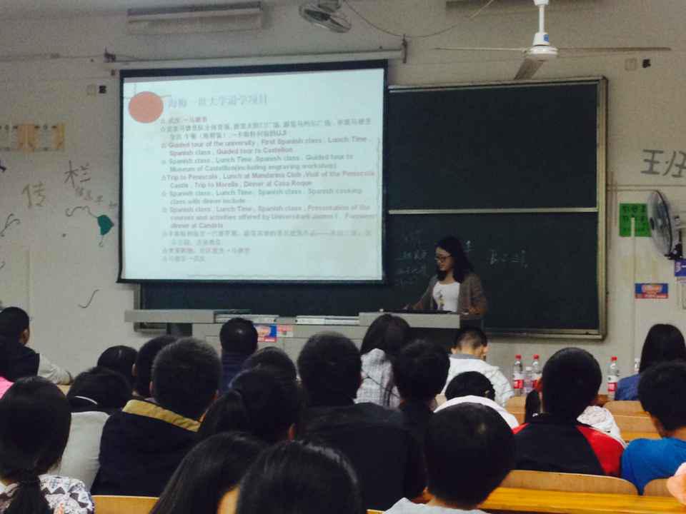 2015年10月9日晚七点半由beat365官网,beat365官网团委学生会主办的西班牙游学报告巡讲在教学楼2栋309如期举行。beat365官网12级临床药学班、13级临床药学班、13级药物制剂班共四名学长学姐作为beat365官网西班牙游学团的代表参加了此次活动。此次活动主要向大家介绍他们在西班牙游学的所见所闻,与大家进行交流。