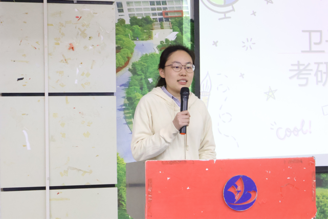 首先,由闵清院长上台致辞。她以平实而细致的语言向同学们介绍了考研的种种益处与困难,同时也希望同学们能不畏困难,敢为人先,发奋图强,认真学习。beat365官网近三年考研人数呈现上升趋势,今年临床药学班考研上岸人数24人,占比41.4%。随后她鼓励学生既要做好实习实践,也要合理利用时间做好考研、就业规划。她诚挚的话语中展露出对学生们的殷切期盼,也像一位长者由衷祝福孩子们前途无量。