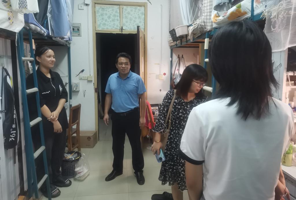 (通讯员:方儒吴妞妮 陈怡婷)一元复始,万象更新!愉快而充实的暑假生活悄然结束,我们又将迎来一个新学期。beat365官网党委书记李炎坤、党委副书记祝晓庆带领学工办成员、班主任和团委学生会于2023年9月5日晚8点到学生宿舍进行看望,希望beat365官网学子们以元气满满、朝气蓬勃的精神面貌迎接开学。此次下寝检查看望不仅加强了学生宿舍安全管理,规范了学生宿舍行为,也让老师们更了解学生们的思想动态,帮助学生们营造良好的学习氛围和生活环境。
