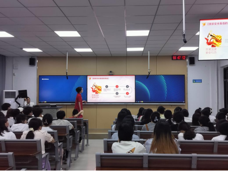 随后,主讲人深入剖析国家安全面临的挑战。列举多种危害国家安全的行为,如阴谋颠覆政府、间谍活动、窃取国家秘密等,结合背叛国家罪、分裂国家罪等具体罪名解释,以实际案例警示同学们,国家安全威胁就在身边,须时刻保持警惕,增强防范意识。
