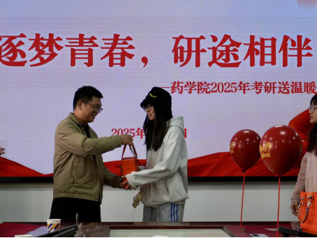 慰问环节中,学院领导与老师亲手为同学们送上精心准备的“考研暖心礼包”,每一份都承载着学院对学子们的细致关怀。老师们轻声叮嘱大家注意身体、劳逸结合,以最佳状态奔赴考场。现场还设置了“研途心愿墙”,同学们认真写下“一战成硕”“顺利上岸”“药学攻坚”等心愿,一张张便利贴汇聚成青春追梦的生动缩影,也凝聚着彼此鼓励、共同前进的力量。