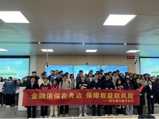 中国民生银行咸宁支行零售消费权益保护部负责人王玮,详细介绍了电信网络诈骗的常见形式与犯罪特点,并就刷单、贷款办理、虚拟购物、冒充客服等方面进行了案例分析,提醒同学们谨记“反诈骗灵魂八问”“五项保障保护措施”,并对大学生可能触及的法律红线进行了普法教育。